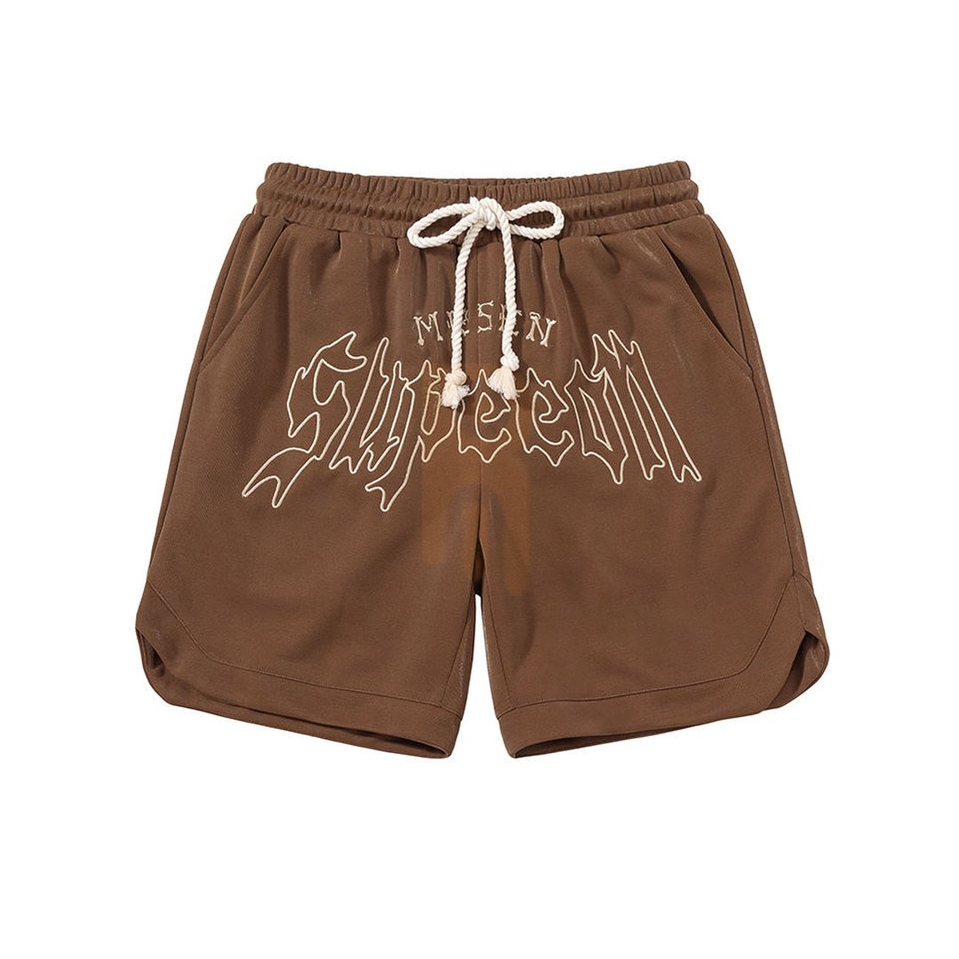 Capture the essence of contemporary street fashion with these Brown Graphic Streetwear Shorts. Perfectly aligning with the current trend of earth tones and bold branding, these shorts feature a rich chocolate brown base that serves as the perfect backdrop for the edgy graphic print. The front displays stylized script branding in a cream outline, giving them a distinct urban look.
